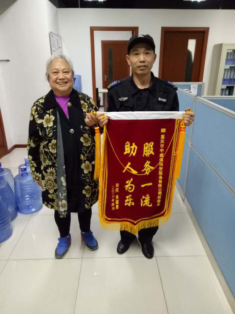 時隔兩月,奔波于安保服務(wù)工作中的趙曉華早已忘記了這件事,沒想到老人卻在4月7日通過手機(jī)上的照片找到了他。原來,老人回家后一直對此事念念不忘,還專門去廣告公司制作錦旗。因家里一直有事,4月7日下午終于得空來到日月光中心找到了趙曉華,對他稱贊有加,希望能將這種精神繼續(xù)發(fā)揚(yáng),幫助更多的人。
