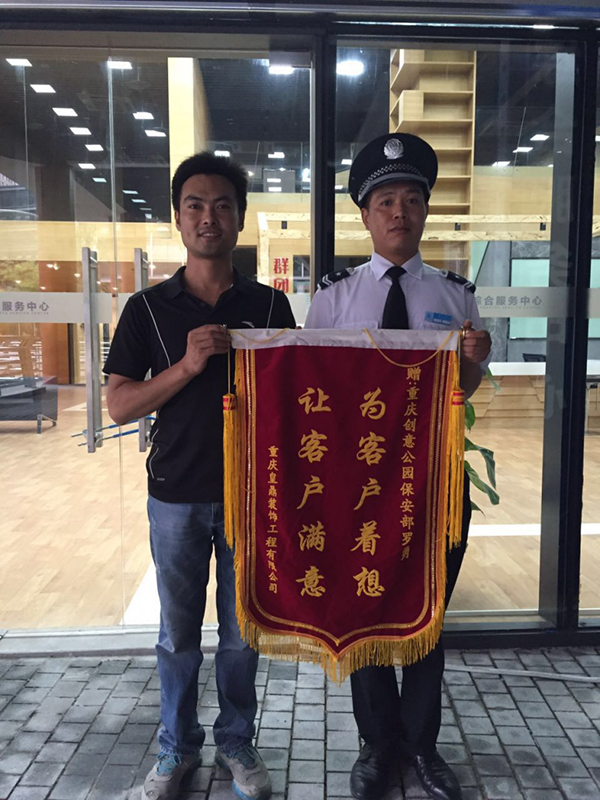 2016年7月10日13點,廣告產(chǎn)業(yè)園D1棟5層1號房內(nèi),重慶皇鼎裝飾工程有限公司正在進行裝修工作,當(dāng)工人們把水泥混好的時,卻發(fā)現(xiàn)沒有水了,而水閘也壞了。為了減少裝飾公司及業(yè)主不必要的損失,中威戰(zhàn)士羅勇積極主動,通過與鄰居協(xié)商,完美地解決了裝飾公司用水問題。19日,皇鼎裝飾老板特地送來錦旗表示感謝。雖然這只是一件小小的事情,但全心全意為業(yè)主服務(wù)的精神卻在隊伍中傳遞開來。