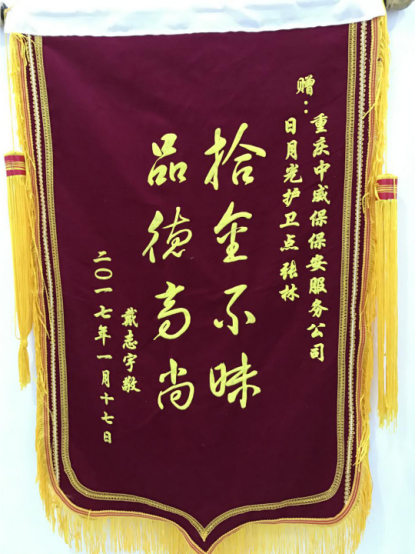 “在人來人往的商場內(nèi),我的手機還能找回,真沒想到,感謝中威保的保安張林”繼2016年12月22日熱心救助昏厥休克男子獲錦旗后,1月28日我司日月光中隊又獲得市民錦旗致謝。