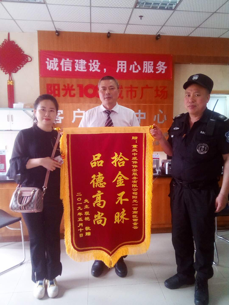 下午3點45分,程女士來到客服中心領(lǐng)取失物,經(jīng)客服中心人員仔細(xì)核實后將手機(jī)物歸原主。5月10日,程女士送來一面寫有“拾金不昧 品德高尚”的錦旗表示感謝。