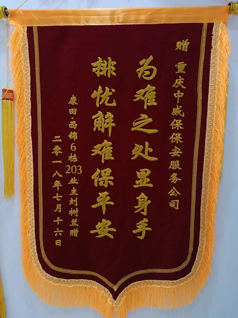 2018年7月16日,我司駐康田西錦巡邏隊員張勇在巡邏時聽到一位老人的求救聲。原來,老人今年87歲了,家里又沒人,自己一人在衛(wèi)生間時意外滑到,無法起立。見此,張勇立即趕到事發(fā)地點,同時通知值班班長陳剛。為了確保老人安全,張勇從落水管爬到4樓的防盜網(wǎng)上進入衛(wèi)生間,同時通知120救護車趕到現(xiàn)場,最終老人得到解救。為了表示感謝,老人特送來錦旗一面。